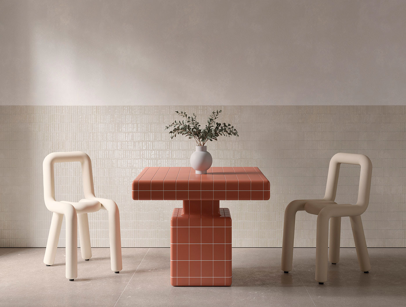 With a tighter texture and surfaces finished in a sophisticated glossy glaze across most of the palette. Only the tone Milk Foam, a warm and velvety white, is offered in an elegant matt finish to emphasize its purity. Stick is the art of turning detail into the main character: a contemporary modular solution, perfect for continuous surfaces or decorative accents in any space.